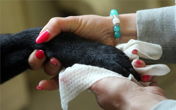 A koronavírus-járvány miatt érdemes a kutyasétáltatásból hazaérve áttörölni az állat szőrét fertőtlenítő törlőkendővel, a mancsát pedig szappanos vízzel megmosni